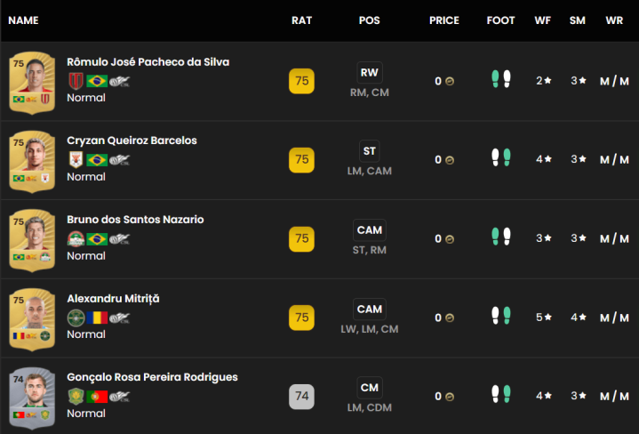 虎扑09月17日讯FC26本周末就将上线,根据已经公布的球员评分,罗慕洛、克雷桑、纳萨里奥、米特里策总评75领衔,前20无本土球员。